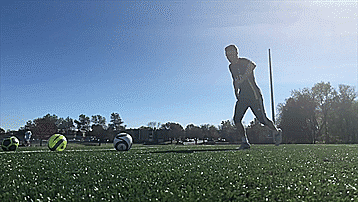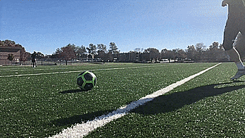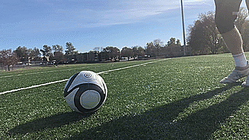 最后一个是两种技巧的组合,叫做大力弧线,有正脚背射门的力量,又比外脚背射门更准确,我们下面开始分解,首先脚尖向下,脚踝锁死,和弧线射门一样,有一个向内摆的随球动作。