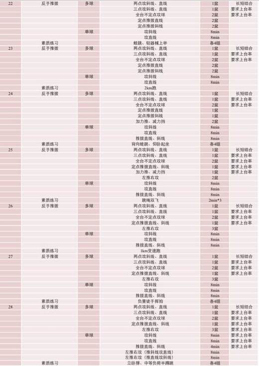 乒乓球每周训练计划表图片