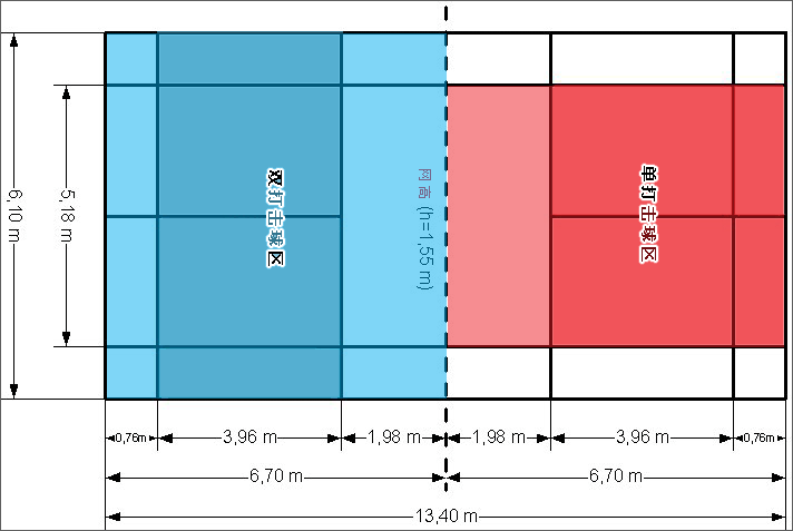 羽毛球场地标准尺寸图解介绍(详解羽毛球场地分区以及长度)